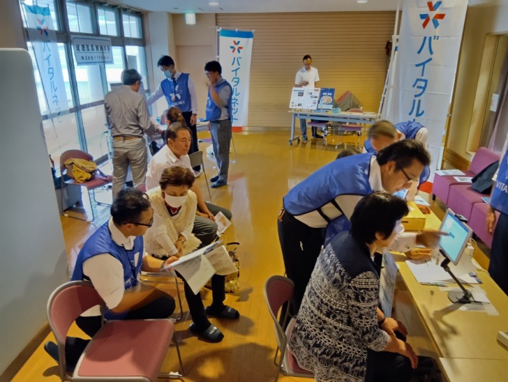 ・ブースでは、体組成・血管年齢・脳年齢・ベジチェックなどの測定を実施。
